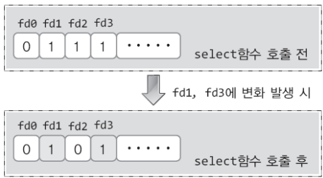 select 함수 호출 이후에는 변화가 발생한 소켓만 1로 설정, 나머지 0으로 초기화