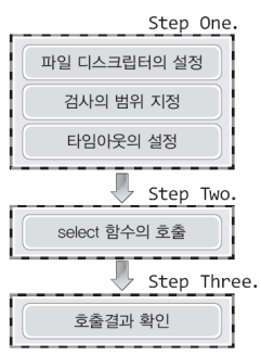 - 2,3,4 번째 인자를 통해 전달된 관찰 대상의 입력, 출력, 오류가 발생했을때 select 함수는 반환을 한다