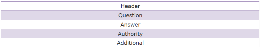 DNS는 UDP나 TCP를 통해 실행할 수 있으며, TCP를 이용하는 경우는 ZONE 전달이나 큰 DNS 퀴리를 보낼 때 이용하며, 일반적으로 UDP를 이용하는 DNS 쿼리/응답 패킷만 볼 수 있다. DNS 메시지의 형태는 기본적으로 다음과 같이 구성되어 있으며, 생략되는 경우도 있다.