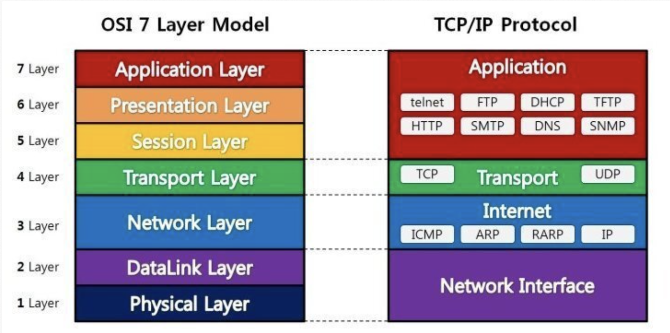 네트워크 통신이 일어나는 과정을 7단계로 나눈 국제 표준화 기구(ISO)에서 정의한 네트워크 표준 모델