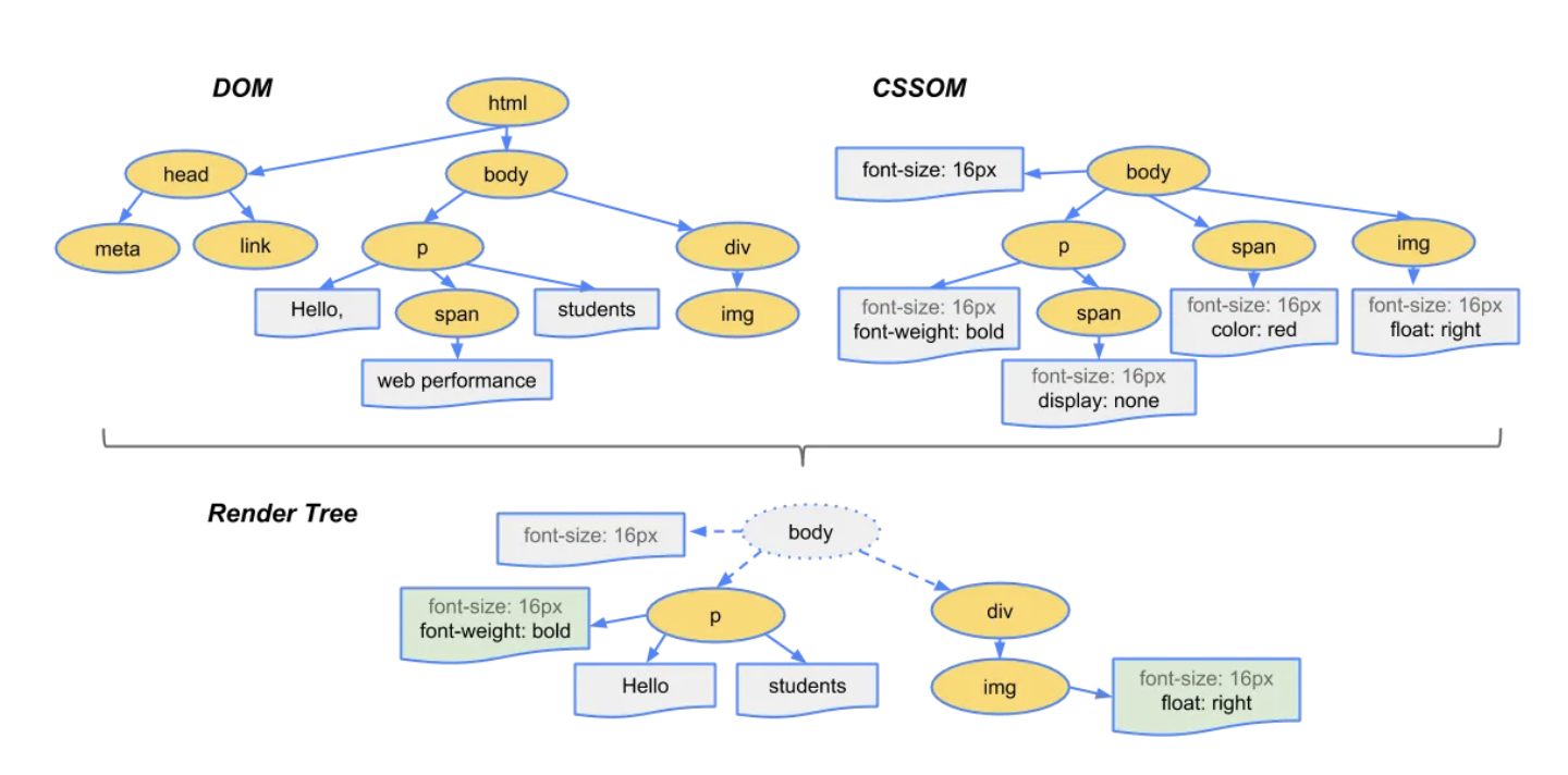 사용자가 웹페이지에 접속하면 아래와 같은 랜더링 과정을 통해 다음과 같은 순서에 따라 랜더링이 이루어진다.